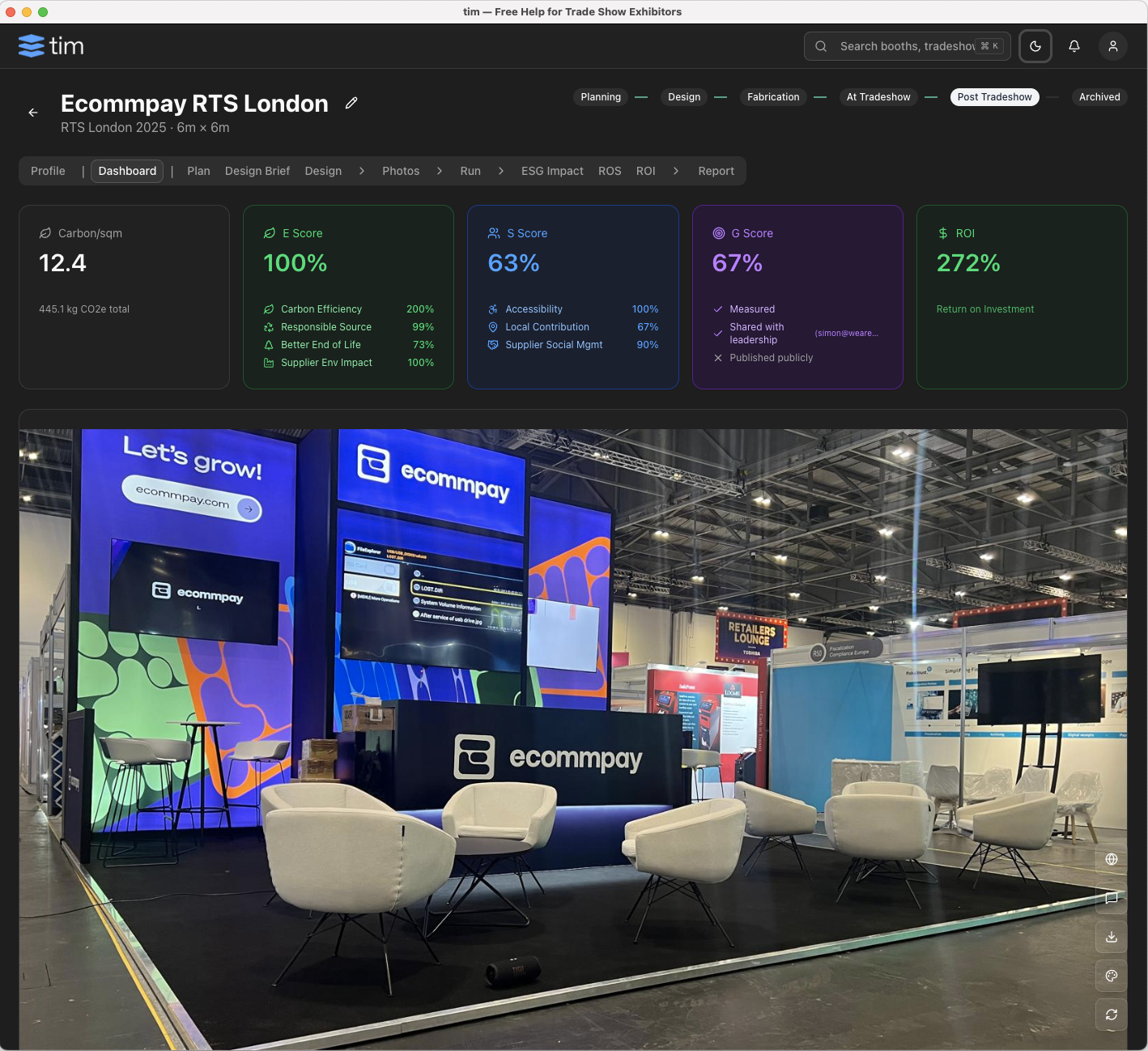 “Our team manages dozens of shows a year with almost no bandwidth. tim takes the sustainability piece completely off our plate — and the cost savings are a bonus.”
